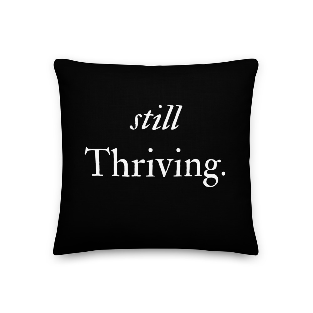 This black ‘Still Thriving’ print cushion is an excellent addition to decorate your home or as a gift idea. The premium pillow is super comfy with a shape-retaining insert and is just perfect for giving any room a more cosy, luxurious feel.